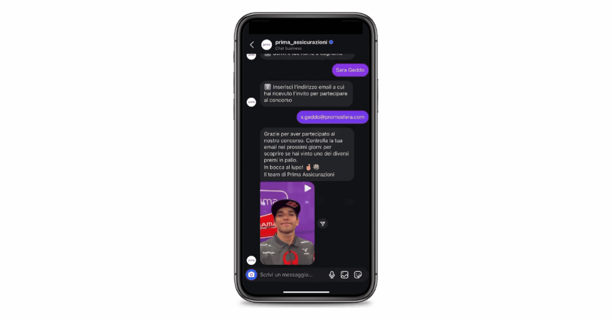 Contest Instagram “Vinci con Prima Assicurazioni: GP di San Marino” 28 August 2024 Case History: L’Efficacia del Contest Instagram di Prima Assicurazioni nella Generazione di Engagement Prima Assicurazioni S.p.A. ha lanciato il concorso a premi su Instagram “Vinci con Prima: GP di San Marino” con l’obiettivo di coinvolgere attivamente i suoi clienti e aumentare l’engagement attraverso la pagina social dell’azienda. L’iniziativa mira a premiare la fedeltà dei clienti offrendo ai vincitori esperienze esclusive durante il Gran Premio MotoGP di Misano. Target Audience: a chi è rivolto il contest Instagram Prima Assicurazioni? Il contest Instagram è aperto a tutti i clienti di Prima Assicurazioni che hanno polizze auto, moto o furgoni attive, acquistate tramite il sito web o l’applicazione ufficiale. I destinatari idonei hanno ricevuto una comunicazione specifica via email contenente istruzioni dettagliate su come partecipare. Per entrare nel concorso, i partecipanti devono commentare il post dedicato su Instagram con l’hashtag #PrimaGPcontest e seguire la pagina @prima_assicurazioni Come funziona il contest di Prima Assicurazioni? Dopo aver commentato sotto al post del concorso con l’hashtag dedicato, i partecipanti riceveranno un messaggio diretto dal promotore via Instagram Direct. Una chatbot guiderà i partecipanti attraverso un flusso di domande che devono essere completate per finalizzare la loro partecipazione al concorso. Tutti coloro che completeranno con successo questo processo saranno inclusi nell’estrazione finale dei premi. Premi esclusivi per i vincitori del contest Prima Assicurazioni Tra le partecipazioni valide, i vincitori saranno estratti in due categorie principali: “VIP” e “Tribuna”. I vincitori della categoria “VIP” riceveranno un pacchetto esclusivo che include l’accesso al VIP Village per due giorni al GP di San Marino, viaggio e pernottamento, la visita all’hospitality di Prima Pramac e il tour del box, oltre a un guest gift e la possibilità di foto con i piloti. I vincitori della categoria “Tribuna” riceveranno biglietti per la tribuna per due giorni e un guest gift, oltre al pernottamento. Altri premi e opportunità speciali Oltre ai premi principali, il concorso prevede la possibilità di vincere anche cappellini autografati, t-shirt e persino la possibilità di una videochiamata di 15 minuti con il famoso pilota Jorge Martin. Più engagement su Instagram anche nel settore assicurativo e finanziario Il concorso “Vinci con Prima: GP di San Marino” rappresenta non solo un’opportunità per Prima Assicurazioni di premiare e rafforzare il legame con i propri clienti, ma anche di ampliare la visibilità del marchio attraverso una strategia di marketing innovativa e orientata all’engagement sui social media. Secondo i dati dell’Osservatorio Promosfera, il settore finanziario e delle assicurazioni ha raggiunto il quinto posto per numero di contest Instagram organizzati in Italia nel 2023. Questo dato è indicativo di un cambiamento verso una comunicazione più diretta e coinvolgente, anche in settori più istituzionali. Nonostante la loro natura meno visiva, anche i brand di questo settore hanno imparato a sfruttare al meglio le opportunità offerte da questa piattaforma con un approccio che rende più accessibili e accattivanti i loro prodotti e servizi.