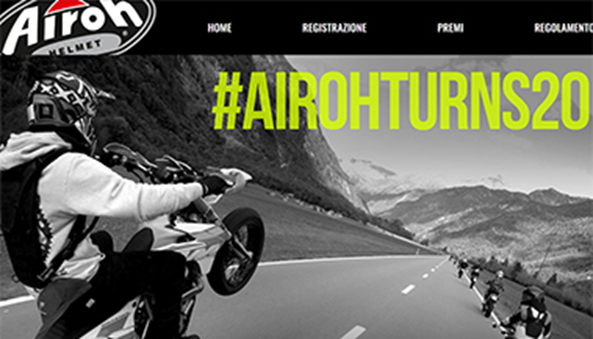 #AIROHTURNS20 Concorso online con estrazione finale Promotore: Locatelli S.P.A. Prodotti: Marchio e caschi Airoh Premi: Casco Aviator 2.2 20th Anniversary, Casco Valor Validitá: Novembre – Dicembre 2017 Paesi Coinvolti: Italia